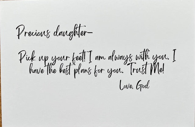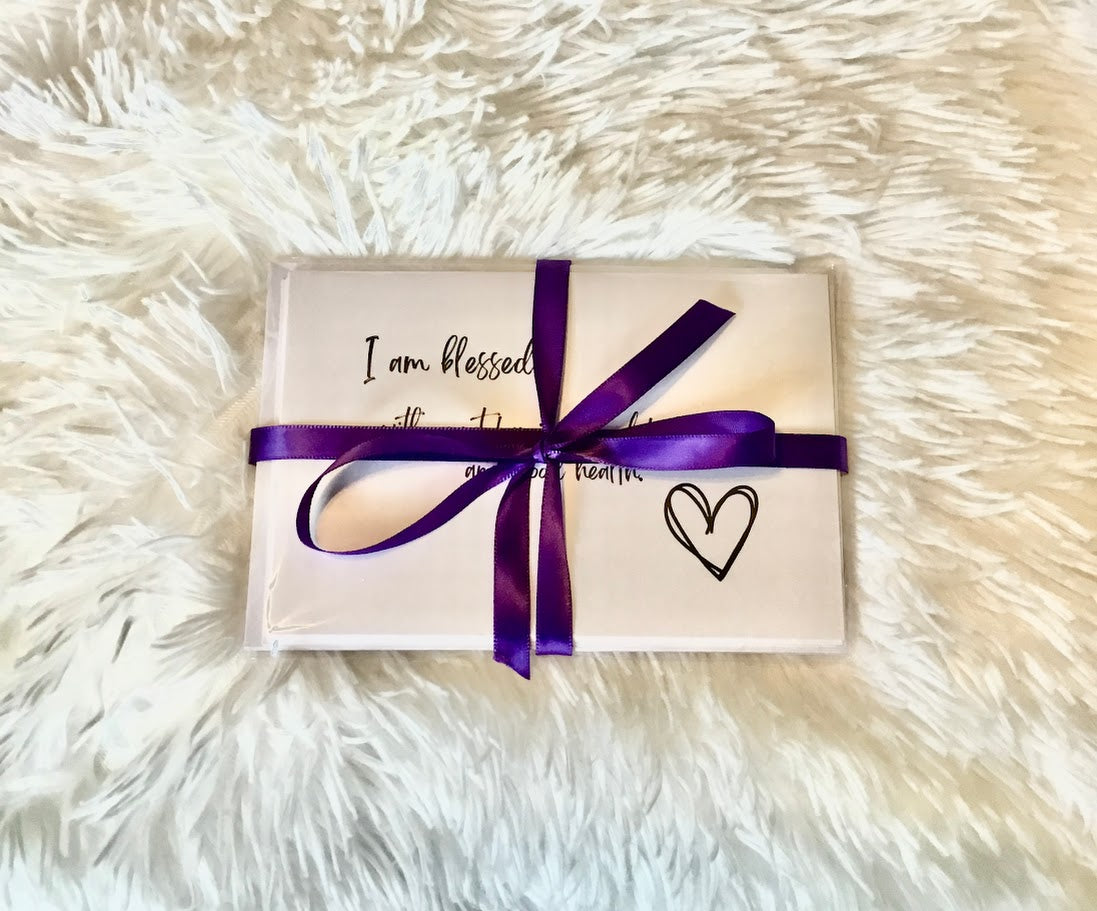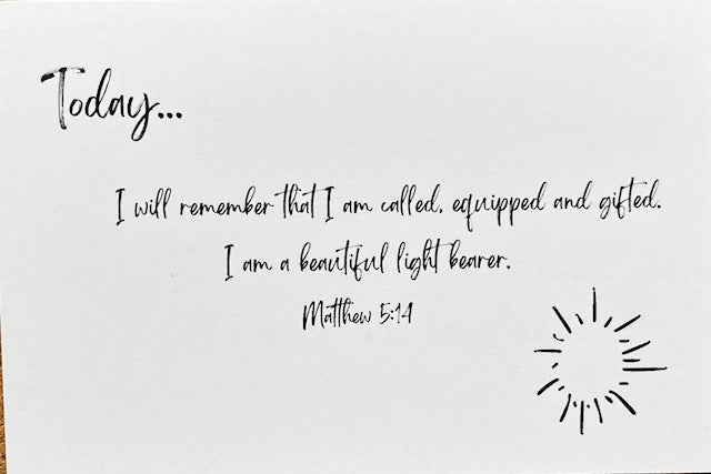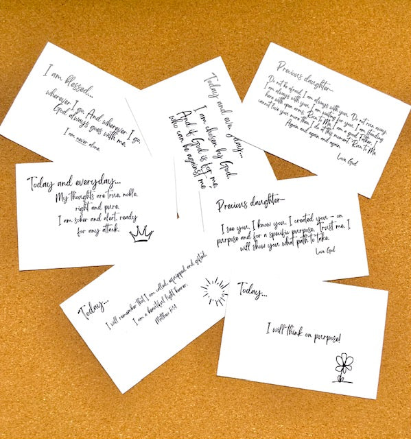 We believe in the power of words to change your mood and to shift your focus. Our carefully crafted cards serve as a heartfelt reminder of friendship, support, love, and most of all, God. All 4x6 cards are created on heavy cardstock and include an envelope.