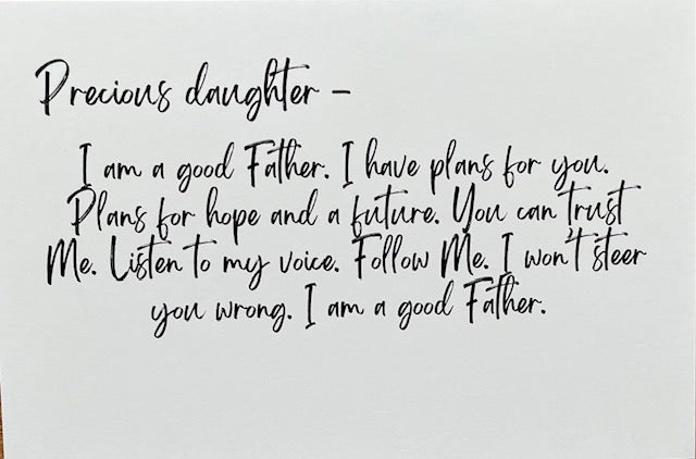I have my card on the fridge as a beautiful reminder (that) God's love for me is enough to direct my paths through His word, the Holy Spirit, prayer and godly people. These cards are beautiful! - Madison H.
